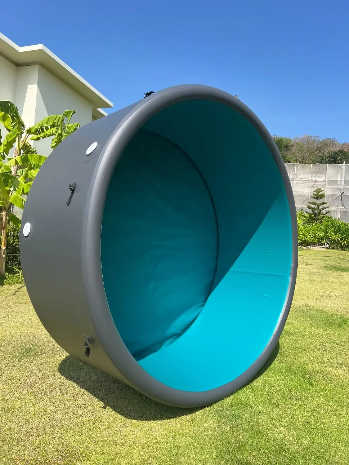 - A piscina é feita de materiais duráveis e de alta qualidade, resistentes aos raios UV e às variações de temperatura. Isso garante longa vida útil e manutenção mínima. As laterais da piscina são fabricadas com a tecnologia drop-stitch, proporcionando maior resistência e elasticidade.
